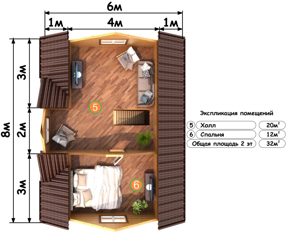 ДОМ ИЗ БРУСА 6*8М. С ВЕРАНДОЙ в Москве