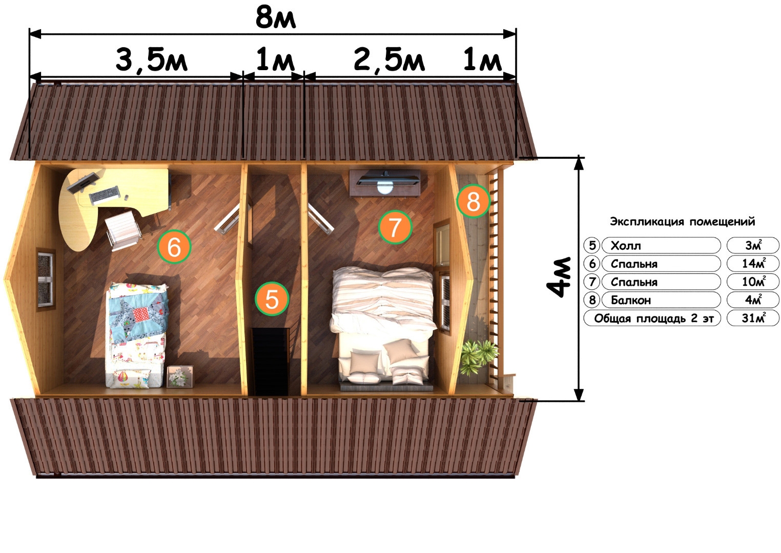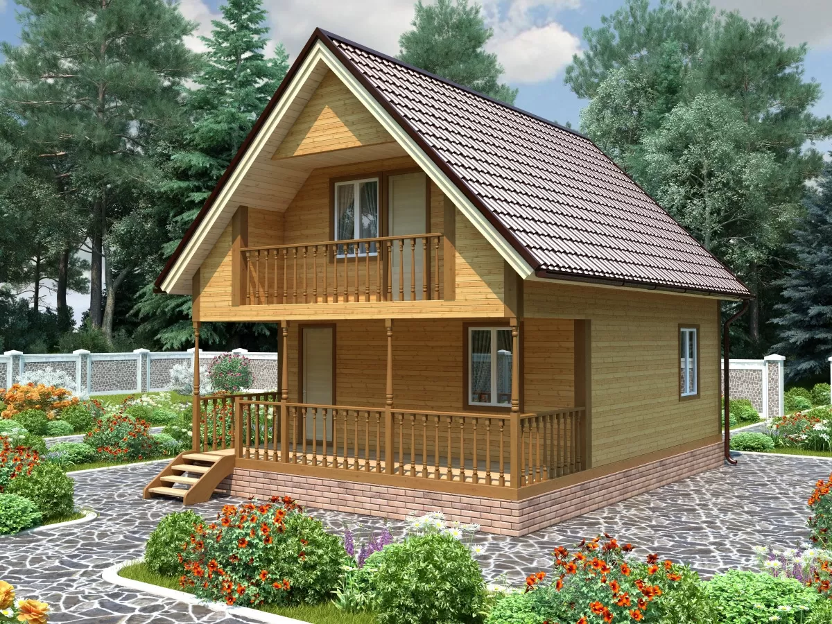 ДОМ ИЗ БРУСА 6*8М. С ВЕРАНДОЙ И БАЛКОНОМ в Москве